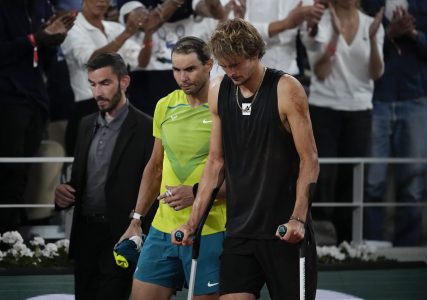 Un entrenador salió a cuidarlo y Nadal caminó alrededor de la red para ver cómo estaba Zverev también. Después de que Zverev regresara a la cancha para decir que tendría que retirarse del partido, estrechó la mano del árbitro y luego abrazó a Nadal.